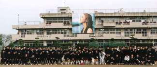 小山市立小山中学校のモザイクアート第3弾は安室奈美江。文化祭のスローガン「ミレニアム2000年小中祭〜今世紀最後のSPECIAL EVENT」に因み、今年の大きな出来事の中から作品の原画は検討されました。そこで、2000年7月に行われた九州沖縄サミットのテーマ曲「NEVER END」を題材にすることに決まりました。制作に携わったのは総合学習の選択として「巨大壁画」を選んだ87名。学年を越えて制作する壁画はひとりひとりの努力の結晶で、多くの「感動」を産みました。