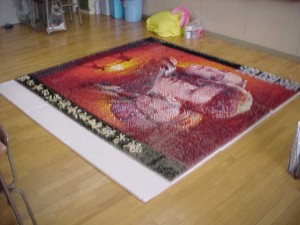 スターウォーズ・エピソード2を爪楊枝点描画で発表しました。同校作品は昨年度に引き続き、中日新聞で紹介されました。最初は爪楊枝でアートをすることにクラス全員やる気があまりありませんでした。部活や勉強で忙しく、またそれぞれ予定もありなかなか作成は進まずみんなあきらめムードがただよいました。しかし、みんなは学校祭で優勝したい、完成したいという気持ちが湧き上がり、全員で協力し見事に完成することができました。