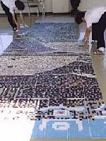 - これは、夏休みを返上してやりました。実際に、88200ドットを確認しました。中には、わざわざ「白」の色紙の変わりに、有色色紙の裏を貼り付ける生徒や設計図の行を飛ばして張る者など、意外な間違いがありました。(白は何も貼り付けません)