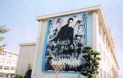 有馬商業高校のモザイクアートは映画「マトリックス」のポスターを元に当年度の統一テーマを盛り込んだ壁画になりました。図案は生徒会総務が決定し全校生徒468人全職員で2センチ片の色紙を貼り、約3週間をかけて仕上げました。巨大画面の一部分を見ただけでは何を表現しているのか全くわかりませんでしたが、繋ぎ合わせ距離をおいてみると、写真同様の美しい絵に完成していました。