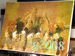 今年の流行語にも選ばれたソフトボール「上野413球」。チームメートとの支え合いが手に入れた金メダルに感動し、私達もクラスで協力して一つの作品を作り上げようと、爪楊枝アートに挑戦しました。発泡スチロールに刺す爪楊枝の深さで、作品の印象が変わってしまうなど試行錯誤の連続でしたが、完成後BLライトが灯り、笑顔の上野投手が浮かび上がると、クラスの絆も再確認することができました。